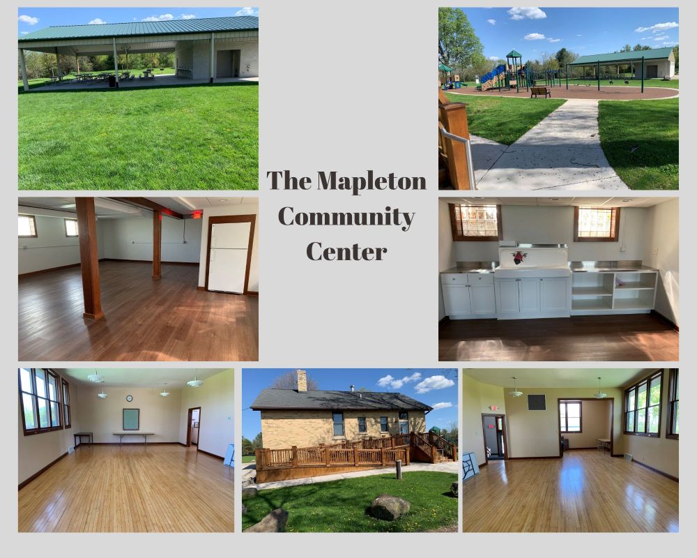 The Mapleton Park is home to the Mapleton Community Center. The Center is available to rent for special occasions. 2025 rental fee is $400, $250 is a refundable security deposit. The rates have increased for rentals in 2026 to $500, with the refundable security deposit remaining $250.00.